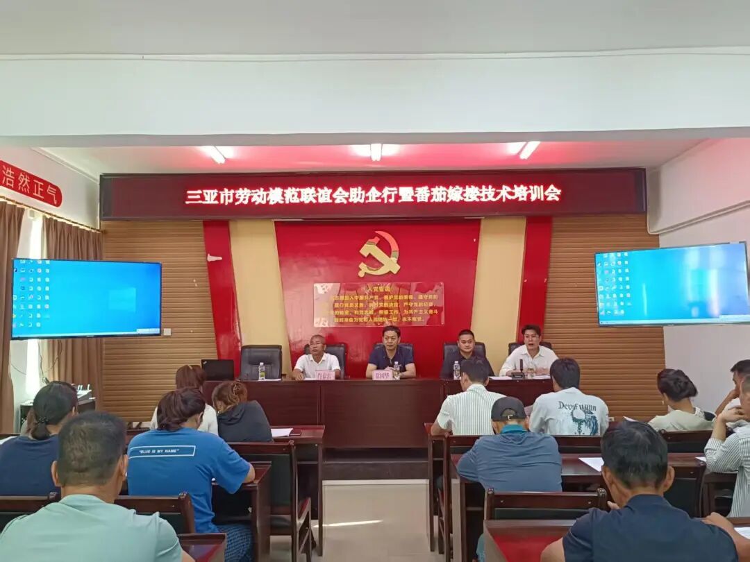 为深入贯彻落实乡村振兴战略,充分发挥劳动模范在助力企业发展、推动产业在乡村振兴中的示范引领作用,11月17日,三亚市劳动模范联谊会暨“劳模助企行”番茄嫁接技术培训活动在那受村委会开展。市总工会经济技术部部长徐国华,市劳动模范联谊会副会长、全国劳动模范周皓参加会议并发表讲话。