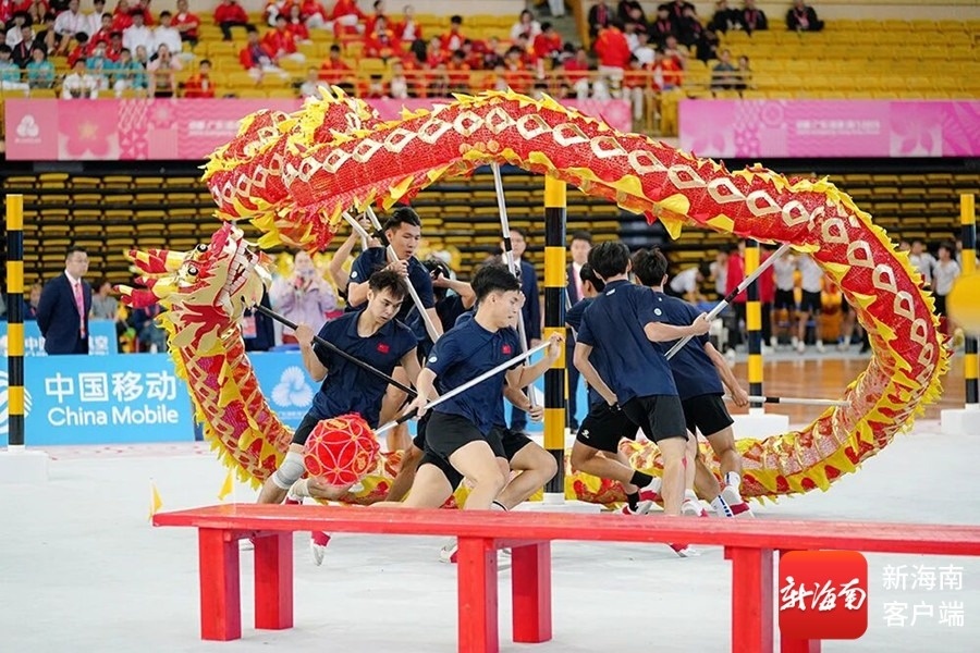 海南舞龙舞狮队在全运会比赛中。图源:赛事组委会