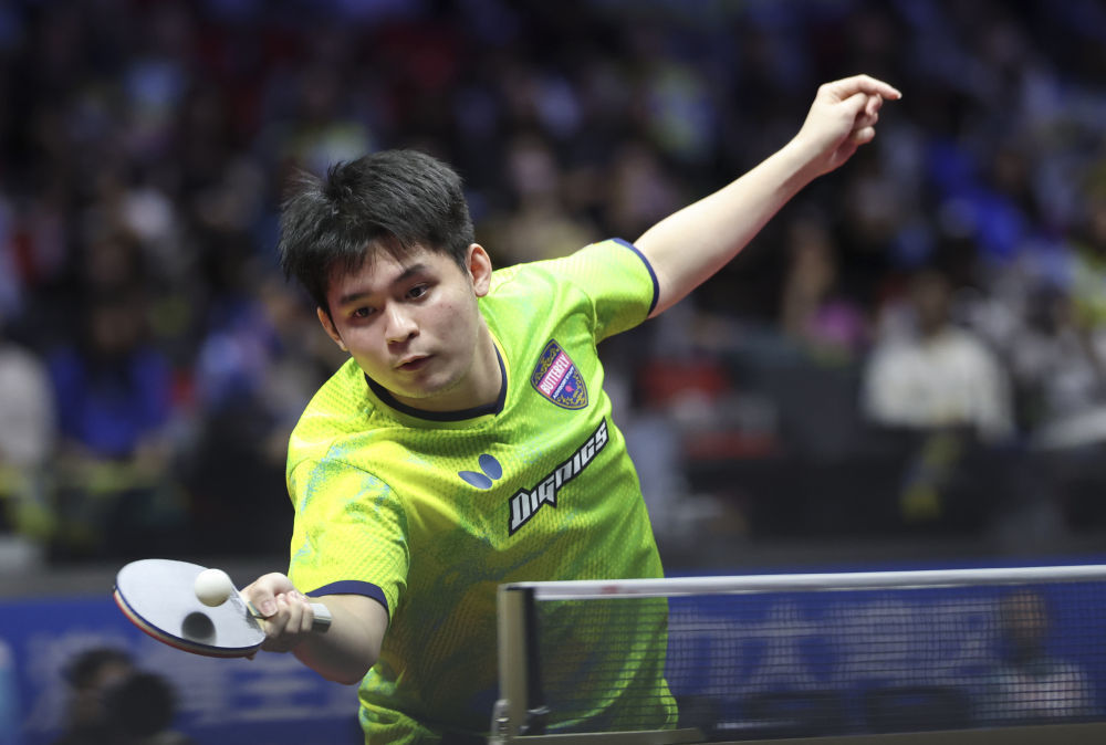 海南队选手林诗栋在比赛中回球。图源:新华社