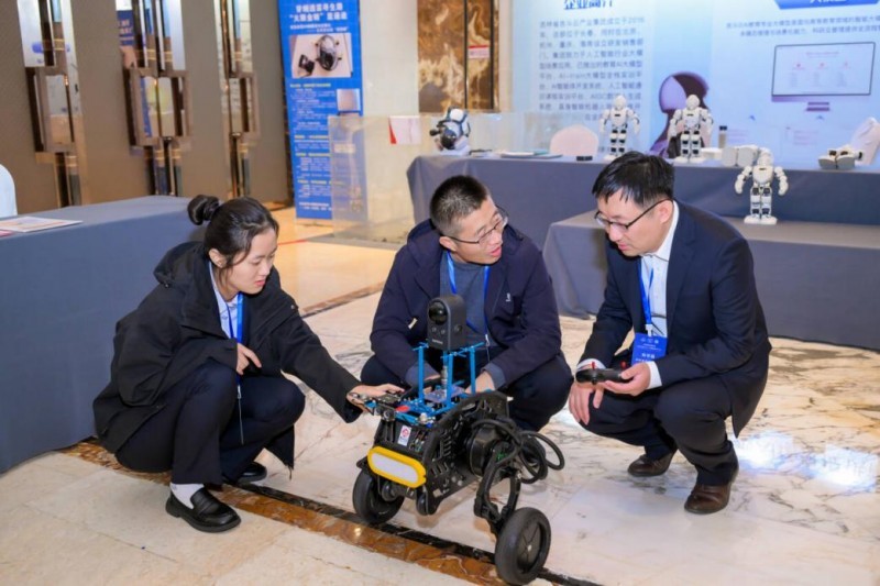 值得一提的是,大会同期设置的企业展区,让产学研对接更趋务实。天津市大学软件学院展示了学校在产教融合方面的特色和优势,吉斗云科技展示的机器人吸引了厦门大学张荣院士的驻足观看,测吧(北京)科技有限公司在人工智能教育方面的系统和平台也吸引了众多参会嘉宾的互动交流,厦门碧谷科技、北京寻领科技、科学出版社、人民邮电出版社、福昕软件、宇树科技等参展企业展示的AI教育平台、人工智能教材、实训系统等创新产品,直观呈现了技术赋能教育的最新成果。