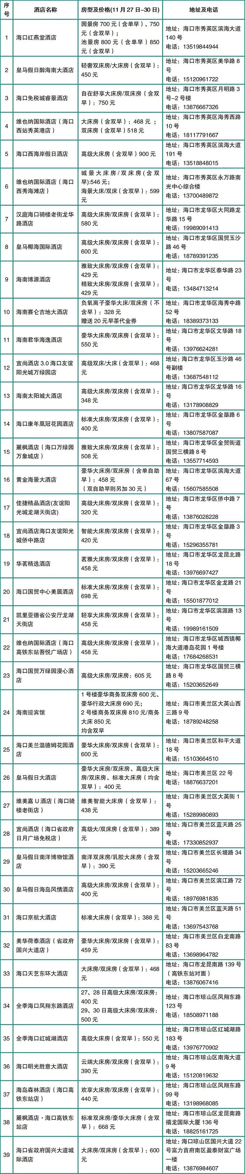 海口往返巴士参与酒店宠粉价名单