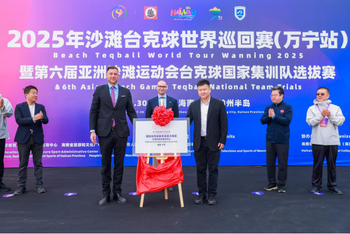 现场同步举行了“国际台克球联合会亚太地区沙滩台克球培训中心”揭牌仪式,标志着万宁正式成为亚太地区沙滩台克球运动发展的核心枢纽,为这项融合乒乓球技巧与足球魅力的新兴运动注入强劲发展动力。