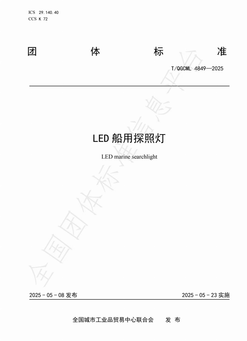 填补行业标准空白:该标准的实施有助于弥补LED船用探照灯领域相关标准的不足,为产品生产、质量控制提供明确依据,推动行业规范化发展。