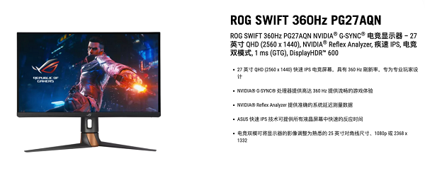 二、华硕ROG超神PG27AQN:360Hz 神速竞逐 2K 超清电竞神器