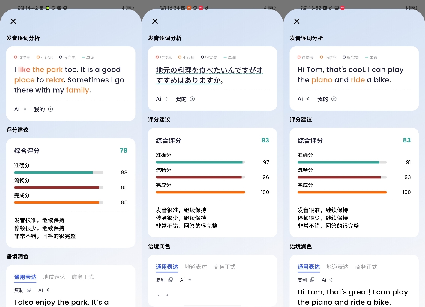 AI 口语陪练: 利用 AI 技术对用户的口语进行实时评估和纠正,提供个性化的学习建议,提高学习效率。