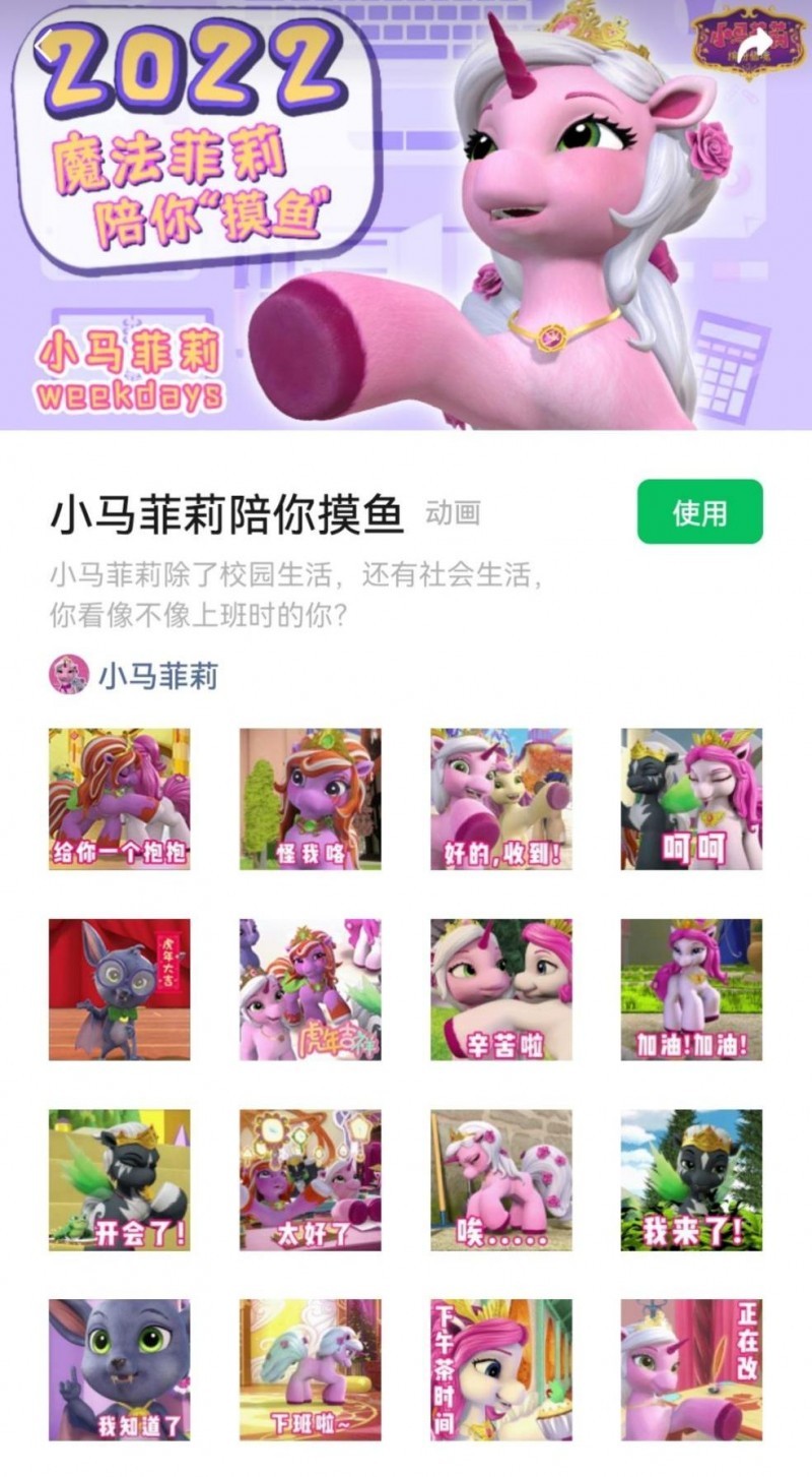 作为深耕女孩与亲子市场的经典IP,小马菲莉此次推出的表情包延续了前几波“勇气、善良、友谊”的核心价值观,同时还融入了新角色的互动。