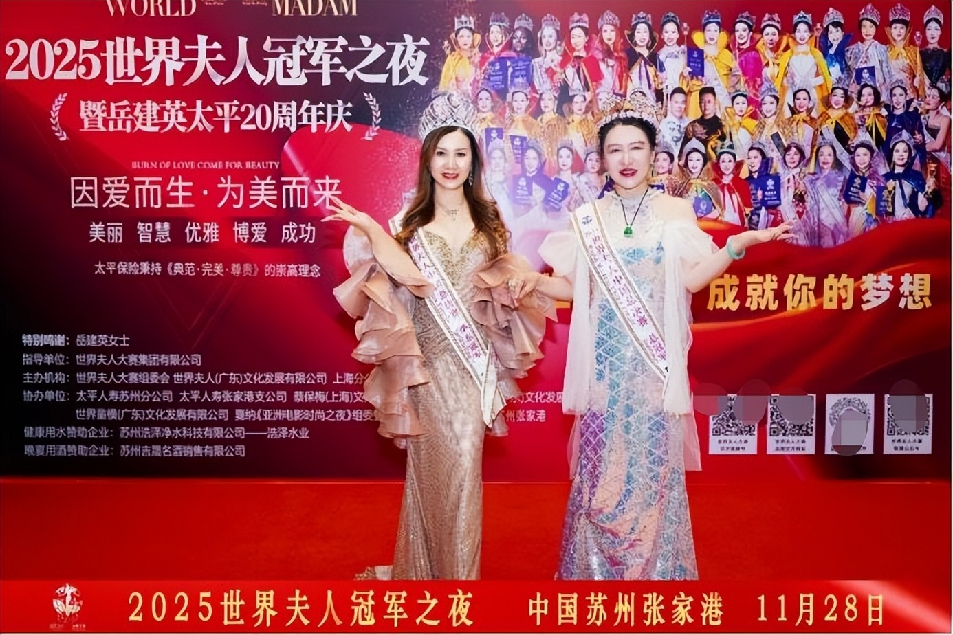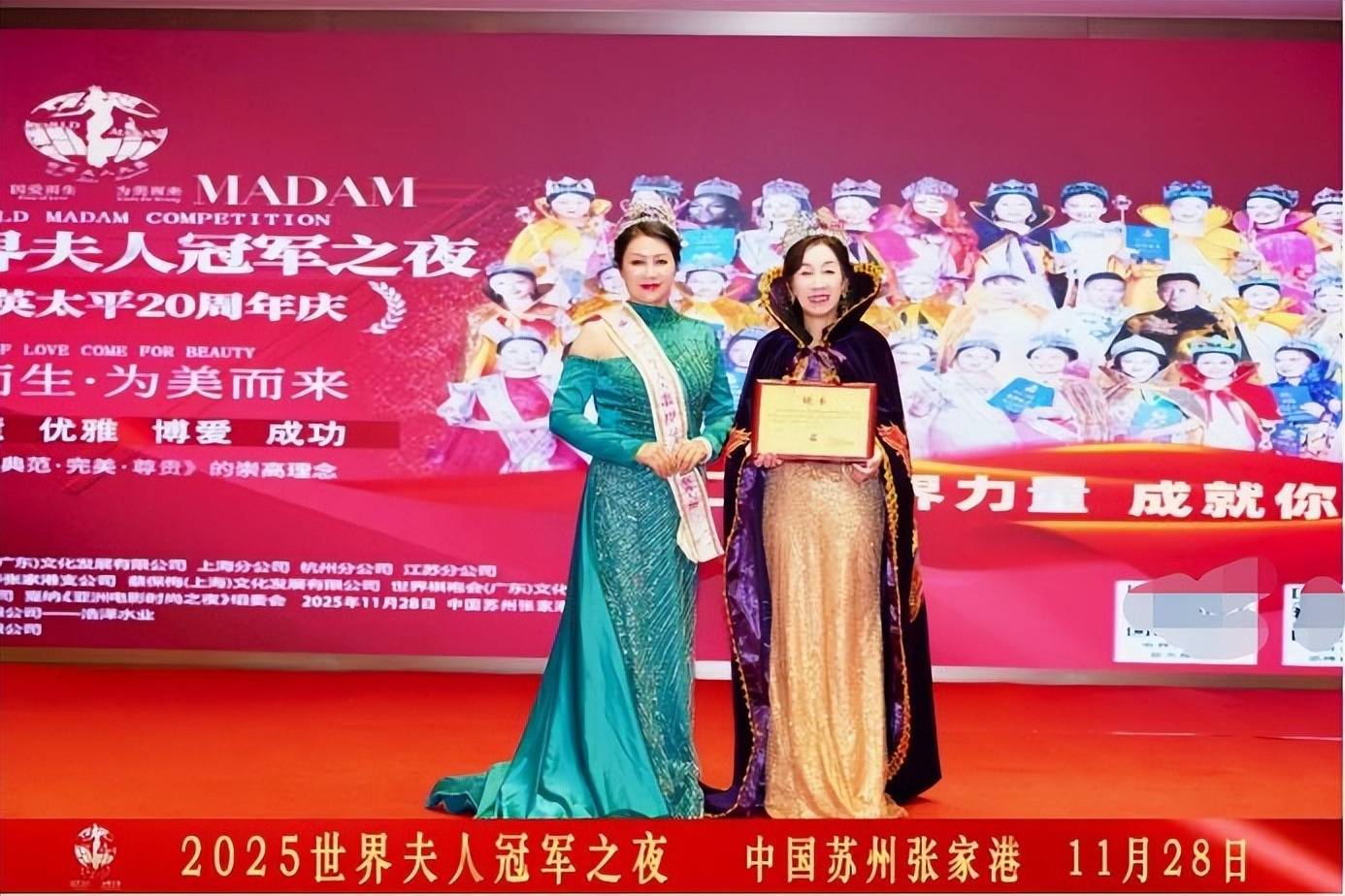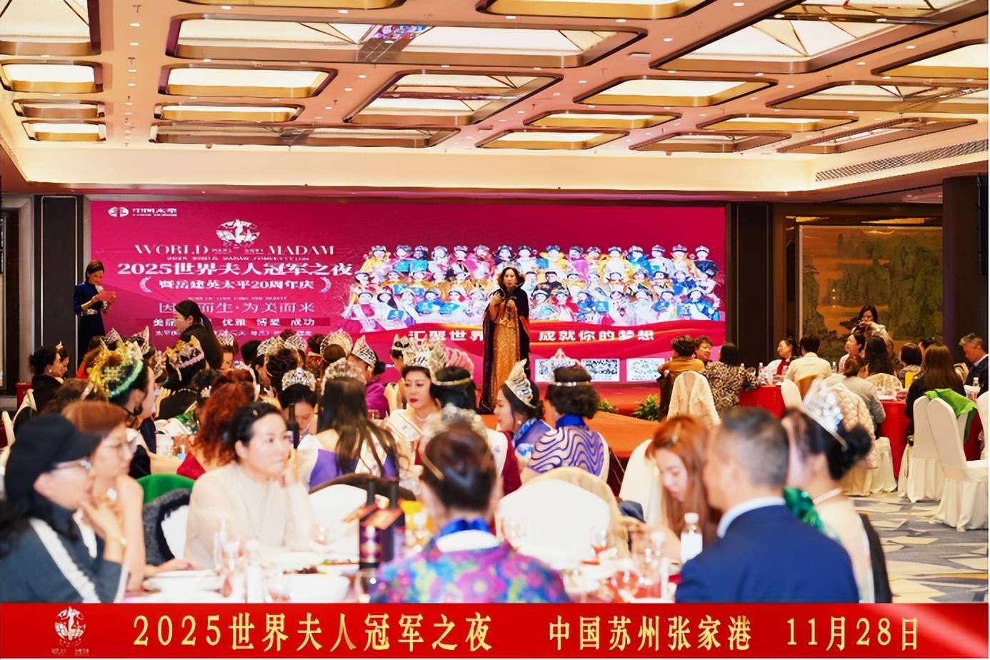 2025年11月28日晚,由世界夫人(广东)文化发展有限公司及其江苏分公司主办,太平人寿苏州分公司、太平人寿张家港支公司、蔡保梅(上海)文化发展有限公司协办的“2025世界夫人冠军之夜”派对,于江苏张家港隆重举行。盛会现场高朋满座,汇聚各界优雅女性,共同见证世界夫人赛事九周年的辉煌历程。