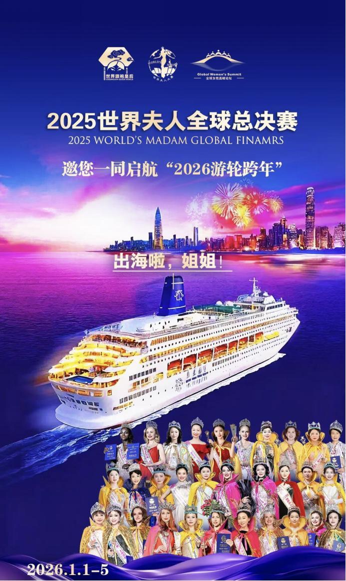 大赛集团董事局主席胡元军先生则隆重预告了下一阶段的全球盛事:2026年1月1日至5日,2025世界夫人全球总决赛暨九周年跨年盛典将在香港及越南真美港举行。届时,来自全球的300余位杰出女性将共聚一堂,以“汇聚世界力量,成就你的梦想”为号,从香港启程,搭乘“鼓浪屿”号豪华邮轮,开启一场别开生面的“海上美丽之旅”。这场融合女性时尚盛典、发展论坛、颁奖典礼与公益慈善于一体的跨年盛会,将在维港夜景与南海风浪的见证下,于倒数迎新中迎来全球总冠军的荣耀诞生,势必成为2025年末最受瞩目的国际女性文化盛事。