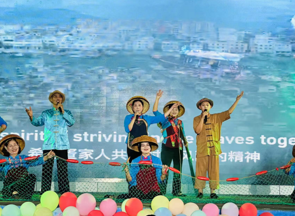 郭何东与其他疍歌传唱人共同在舞台上演出