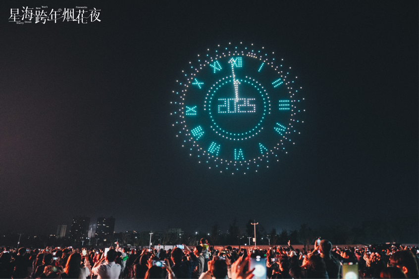 无人机表演则成为本次跨年的一大亮点,“生命之树系列”无人机编队在夜空中组成灵动的光影造型,流线型的光点阵列如同生命之树缓缓舒展,与地面的烟花秀形成上下呼应的视觉奇观;跨年倒计时阶段的无人机烟花大秀,以璀璨的光影矩阵拼出新年祝福,将现场氛围推向高潮。