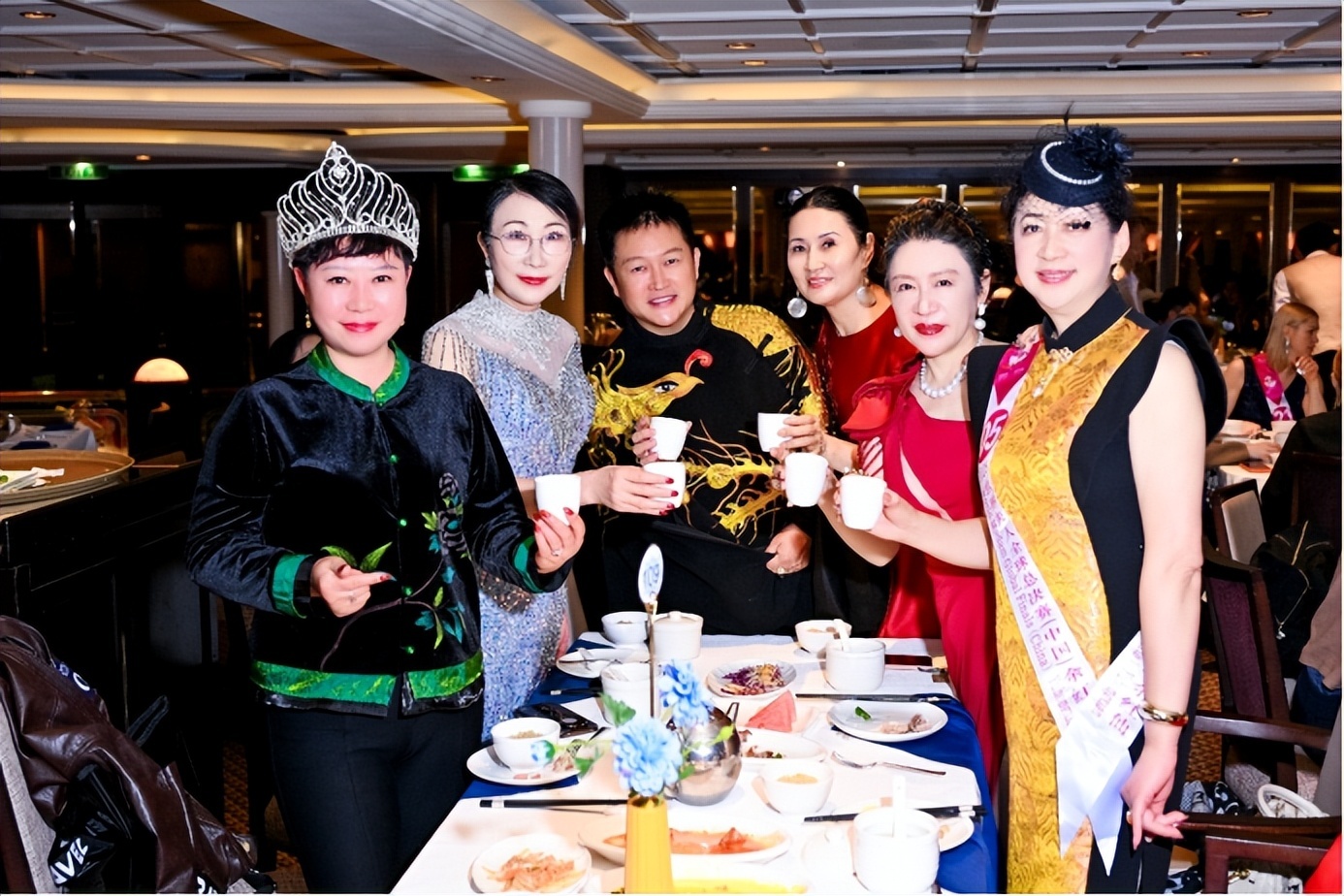 晚宴伊始,冯跃振主席携主席团成员共同致祝酒词。他首先对各位佳丽在各分赛区的优异表现表示祝贺,向远道而来的 40 国参赛选手致以热烈欢迎。谈及本次选择鼓浪屿号邮轮举办海上总决赛的初衷,冯跃振主席深情阐释:“大海的辽阔与包容,恰如女性坚韧而温暖的力量,能够让不同国家、不同文化背景的杰出女性打破隔阂、深度联结。我们希望借助邮轮一站式的便捷体验与跨年迎新的浓厚氛围,为全球已婚女性打造一场兼具时尚风采与自我成长的独特盛宴。” 他鼓励所有选手在后续比赛中尽情展现真我,用智慧与优雅点亮赛场,绽放属于自己的璀璨光芒。