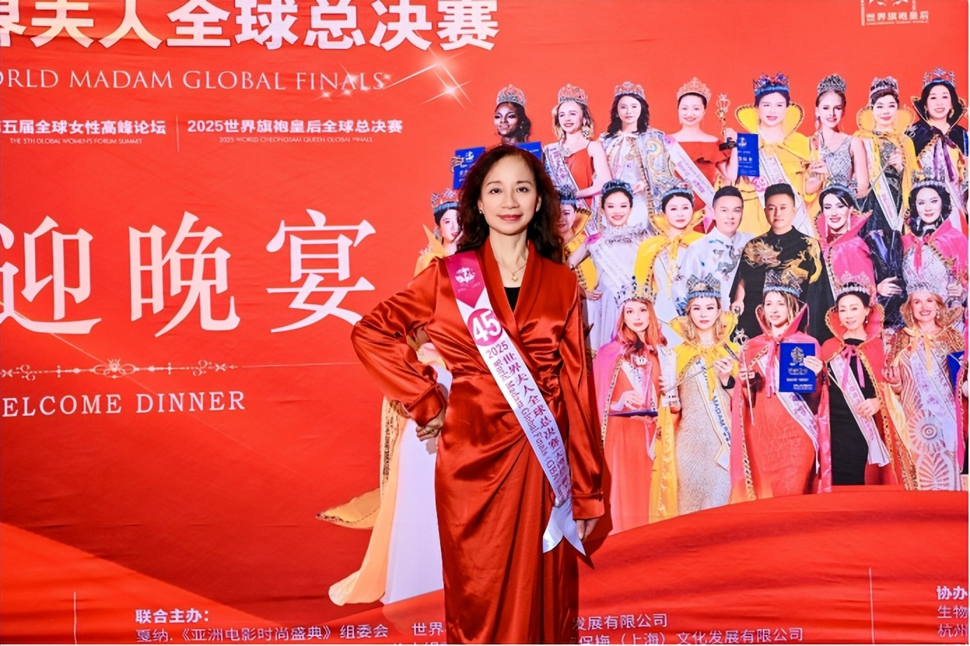 作为盛典开篇重头戏,欢迎晚宴星光熠熠。世界夫人创始人全球主席冯跃振,全球常务主席蔡宝梅,全球区秘书长、集团董事局主席胡元军,中国区执行主席陈贤,副主席陈玲等核心主席团成员莅临现场,2018 至 2025 年历届世界夫人获奖代表也齐聚一堂,为赛事送上诚挚祝福,共同见证这一跨国女性交流盛事的启幕。