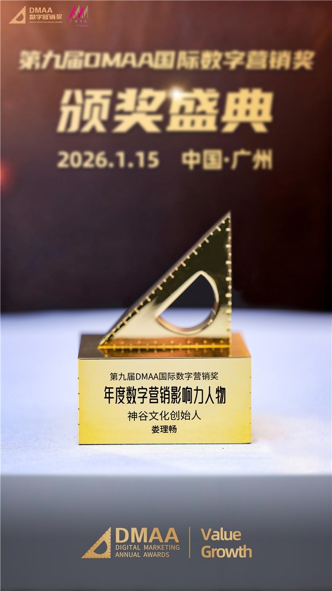 近日,第九届DMAA国际数字营销奖(The 9th Digital Marketing Annual Awards)正式公布获奖结果。神谷文化创始人、CEO娄理畅凭借其在数字营销领域的实践经验与行业积累,获评“年度数字营销影响力人物”奖项。
