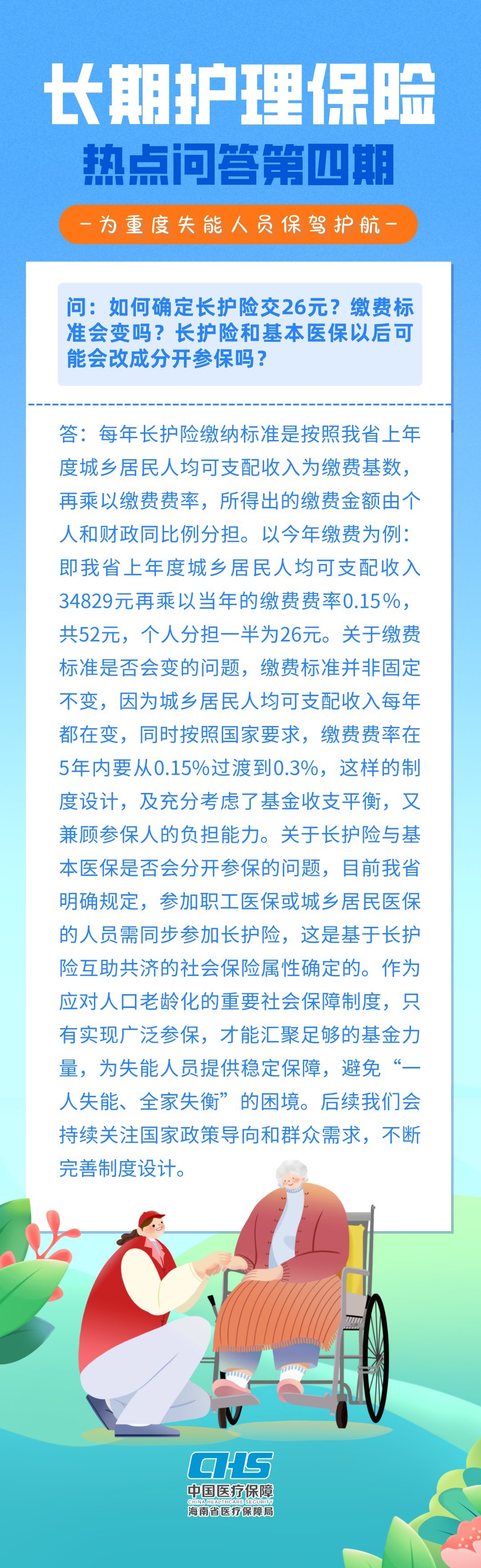 (原标题:长期护理保险热点问答第四期 | 如何确定长护险交26元?缴费标准会变吗?长护险和基本医保以后可能会改成分开参保吗?)