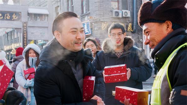 一位老师傅接过以哈尔滨大剧院为设计灵感的“冰城青影”联名杯,看到杯身上“让爱更有温度”的字样,朴实地笑了:“这天气干活,能随时喝上热乎的,身上和心里都暖了。”