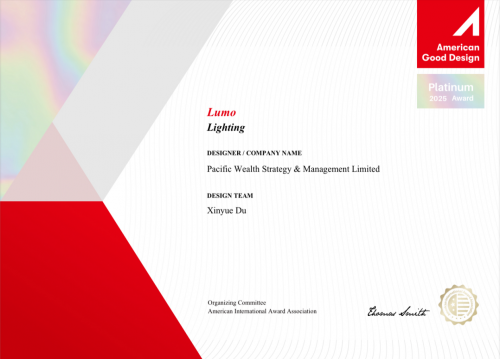 香港,2026年1月22日 – 位于香港数码港的创新型科技企业Pacific Wealth Strategy and Management Limited(以下简称PWSM)宣布,其智能情感陪伴产品 《Lumo 小光伴》 荣获2025年度 美国好设计奖白金奖。该产品由公司创始人 杜歆越先生亲自主导并完成核心设计,以其独特的情感化设计理念与极简美学语言,赢得国际评审团高度评价,被誉为“一件重新定义光与陪伴的温暖之作”。