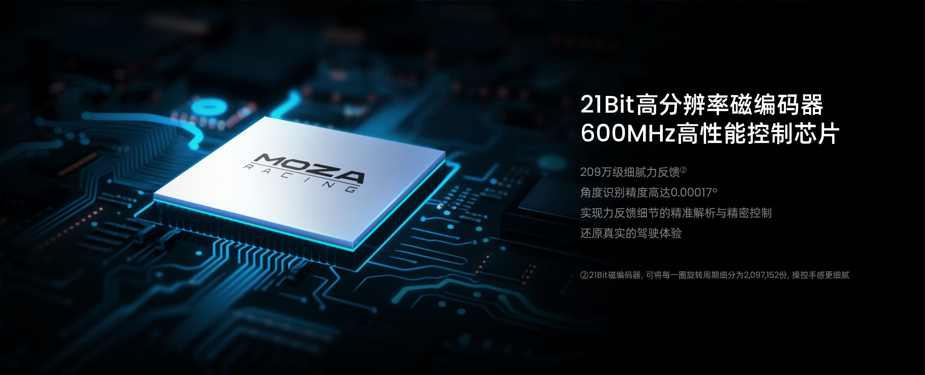 李治廷使用的R21 Ultra旗舰直驱基座采用MOZA自研超高扭矩密度扁线电机,可持续稳定输出21牛米的强劲扭矩,600MHz高性能CPU大幅提升算力,赋予基座更高的数据处理速率,实现高扭矩转化率、超低延迟,以及高阶力反馈算法的稳定运行。搭载21位高精磁编,209万级分辨率,角度识别精度高达0.00017°,实现对力反馈细节的精准解析与精密控制,让力反馈质感与细节更加拟真出色。