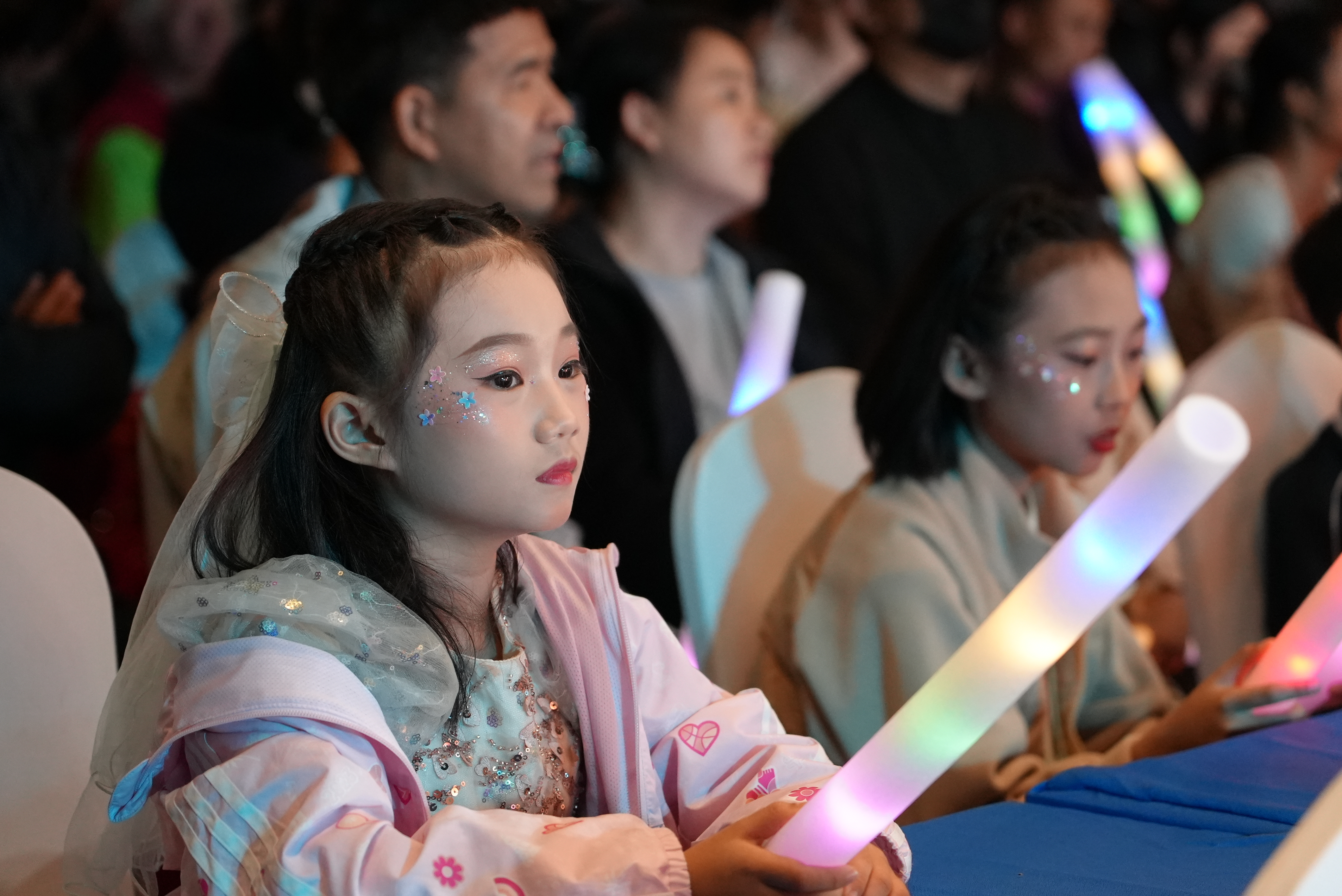 当晚,小选手们身着精心准备的服装,带着精致的妆容,在家长的陪伴下早早来到现场。他们精神饱满、信心十足,眼中闪烁着期待的光芒。