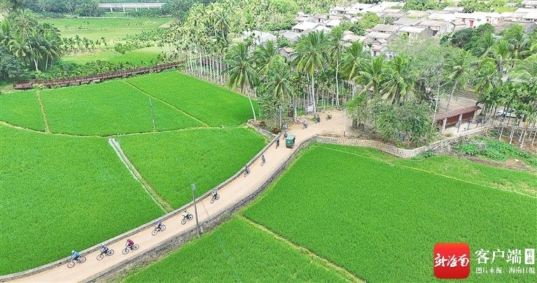 资料图:在定安县龙湖镇高林村,游客在田间骑行。海南日报记者 张茂 摄