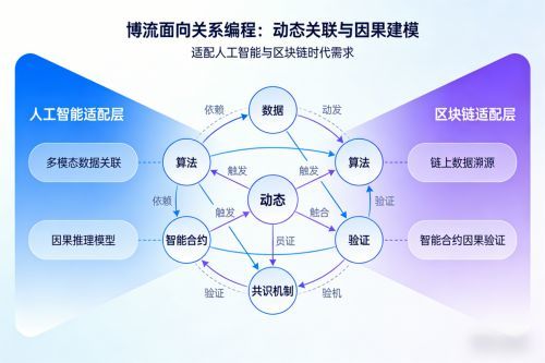 “博流”精准地捕捉到了这一时代脉搏,首次提出了“面向关系”的编程范式。它将“关系”(如关联、因果、信任、协作)作为语言设计的核心。用形象的比喻来说:传统语言在教计算机认识“一辆车”、“一盏灯”,而“博流”在教计算机理解“拥堵”——这个由无数车、灯、路网动态交互涌现出的复杂关系网络。这一范式与AI学习关联、区块链构建信任的需求天然同频,被业内专家认为是面向智能时代的“下一代编程思想”。