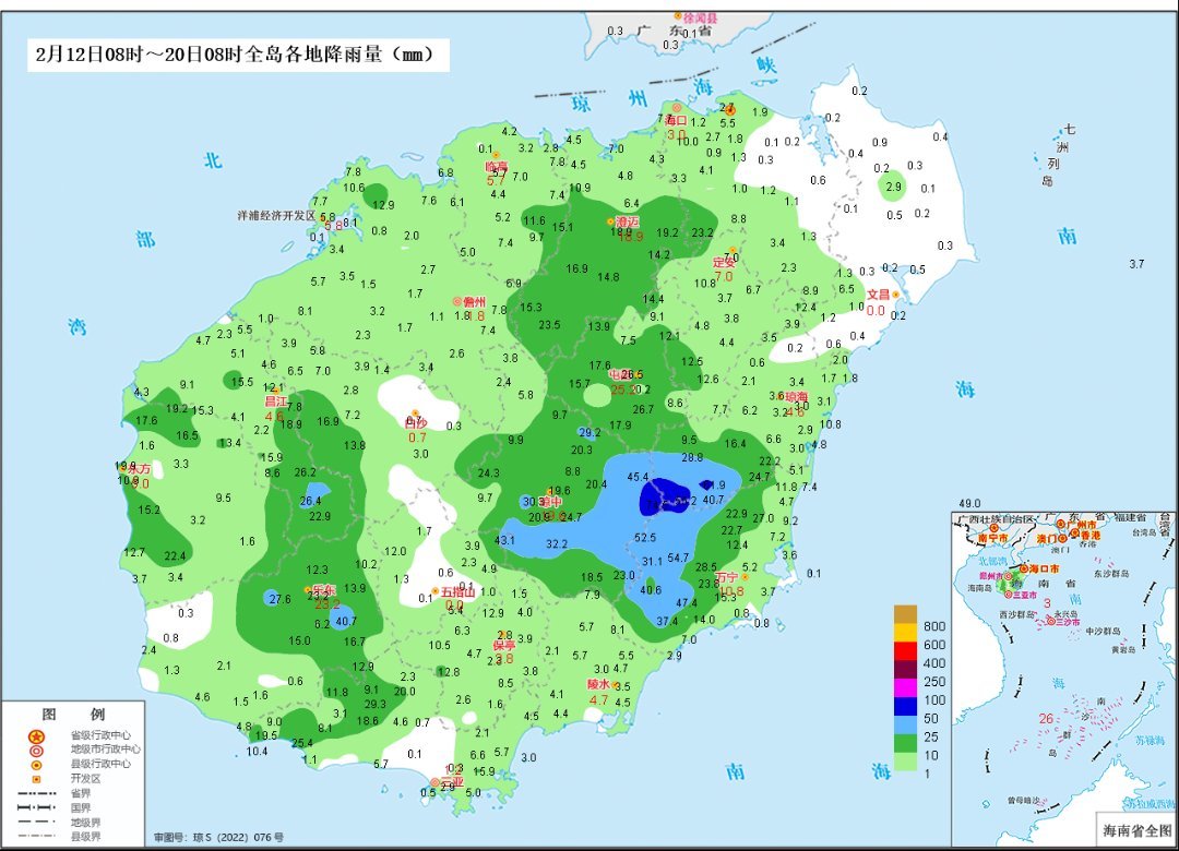 2026年2月12日8时—2月20日8时海南全岛雨量