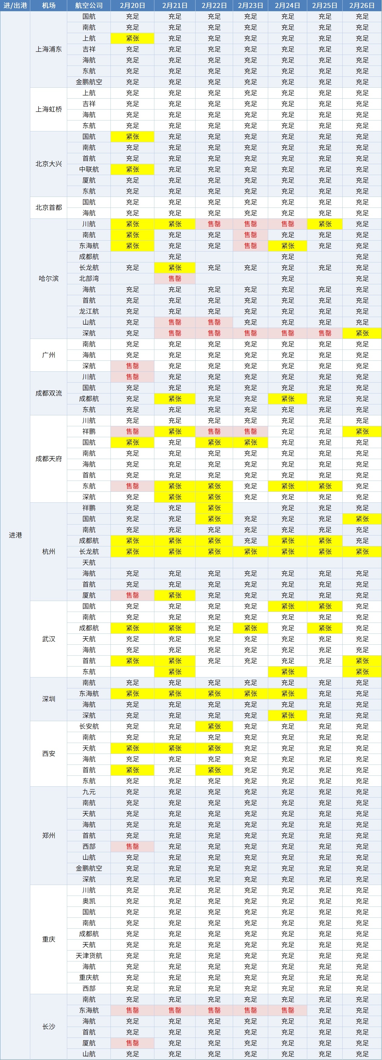 截至2月20日,出港方面,2月20日-26日,海口前往上海、深圳、武汉、杭州、珠海、贵阳、揭阳、厦门等地的机票十分紧张;进港方面,除哈尔滨、成都、杭州、武汉、深圳的部分航班外,春节假期及节后的进岛机票都比较充足。