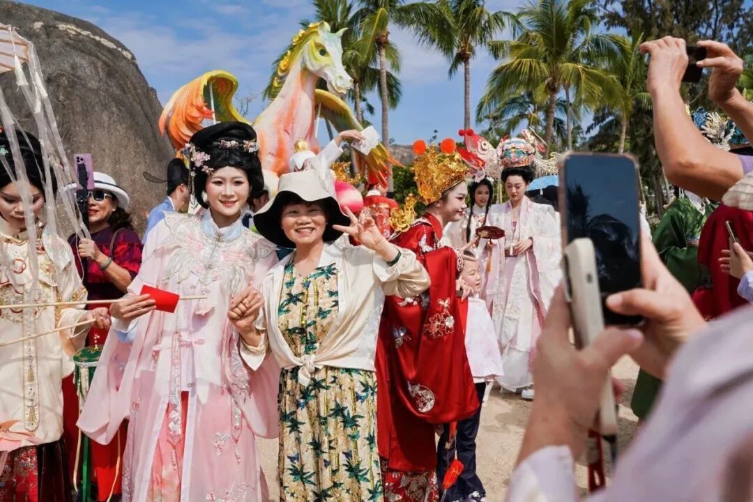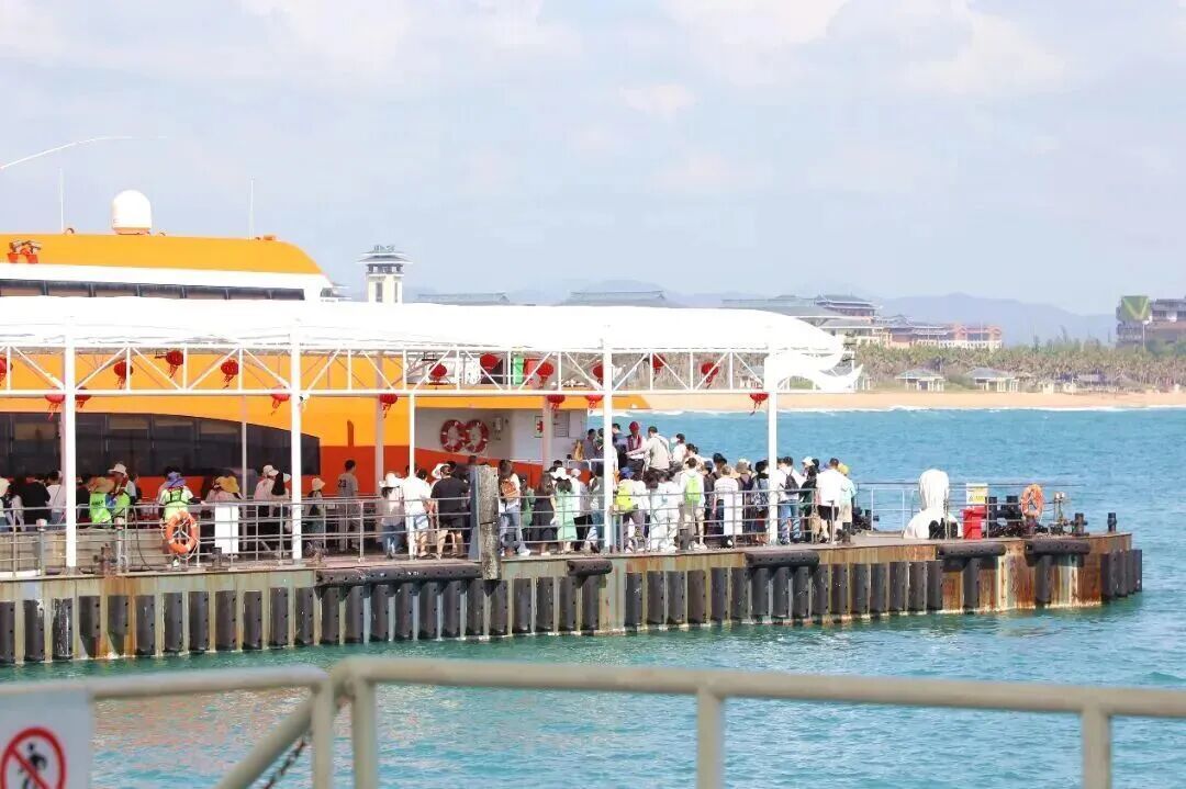 景区的服务保障同样细致到位。面对春节旅游高峰,蜈支洲岛、西岛两大海岛景区全面强化运力,增开班次、启用双码头、加密船舶通行频次,最大限度压缩游客候船时间,让海岛出行更顺畅、更舒心。西岛码头的“野生演唱会”,成为今年新春最动人的暖心场景之一:漫长的候船队伍里,游客自发唱起歌来,景区工作人员见状立即送上灯光、音响和饮用水,一场临时发起的合唱瞬间点燃现场氛围。枯燥的等待变成了欢乐的相聚,焦急的心情化作温暖的共鸣,这一幕也成为三亚用心服务、以情暖客的生动缩影。
