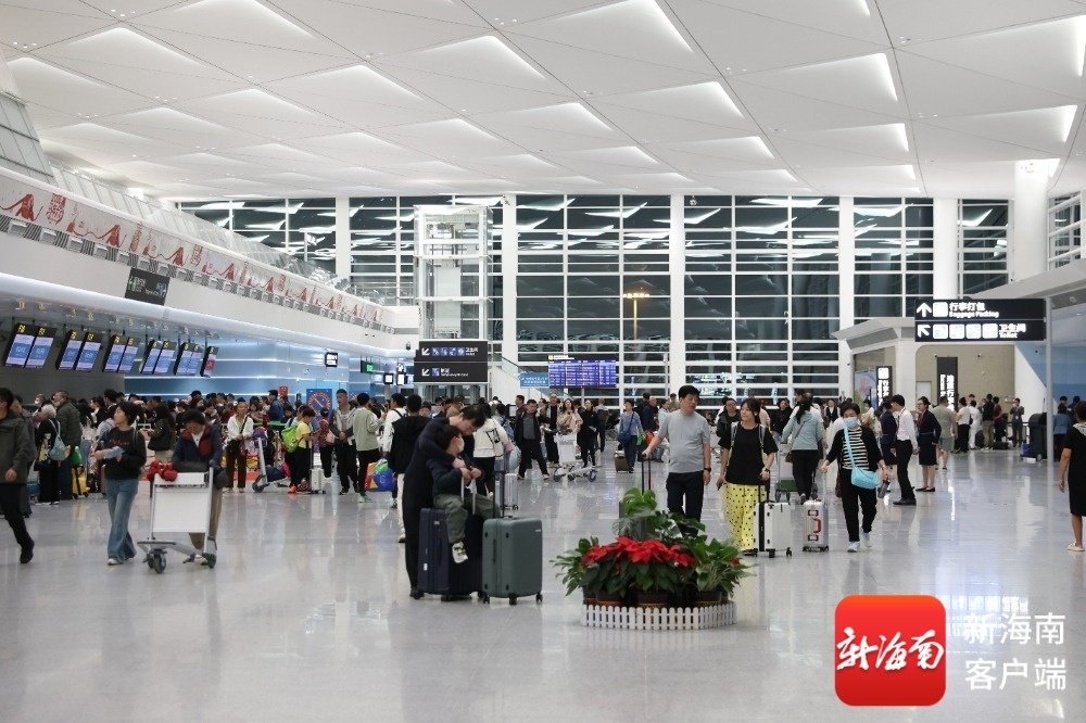 春节假期,海口美兰机场航站楼内人潮涌动。海南机场供图