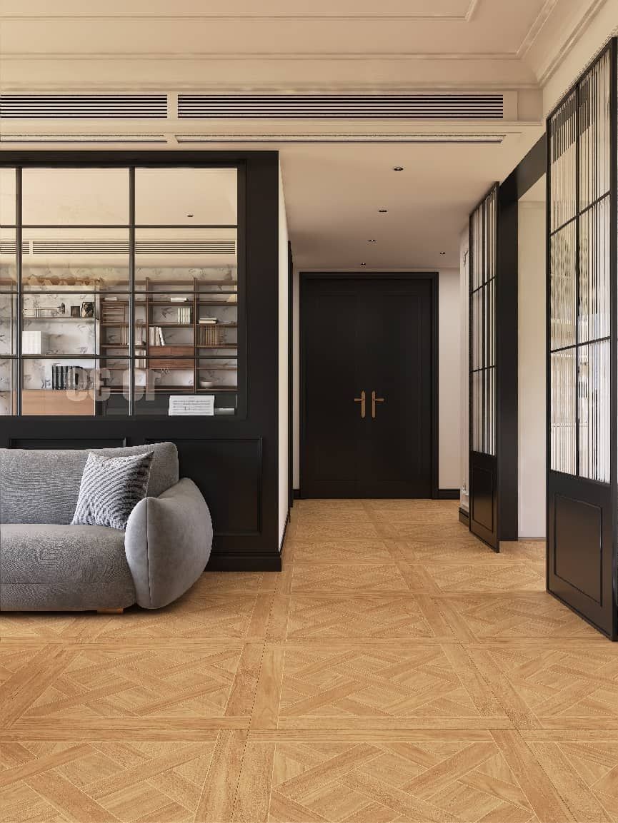 对于仿木瓷砖这类产品,消费者往往存在“是否逼真”、“是否耐磨”、“是否好打理”等疑虑。罗浮威尔在产品研发上精准回应了这些问题。以木纹系列为例,其不仅通过微模精雕复刻了天然木材的凹凸质感,更在实用性上下足了功夫。产品具备防滑、耐磨的特性,且得益于全瓷工艺的极低吸水率,即便在潮湿环境下也无需担心发霉变形 。此外,针对消费者关心的“好不好贴”问题,罗浮威尔推出的直边全瓷木纹砖,由于平整度极高,铺贴效果更加美观大气,有效降低了施工难度。
