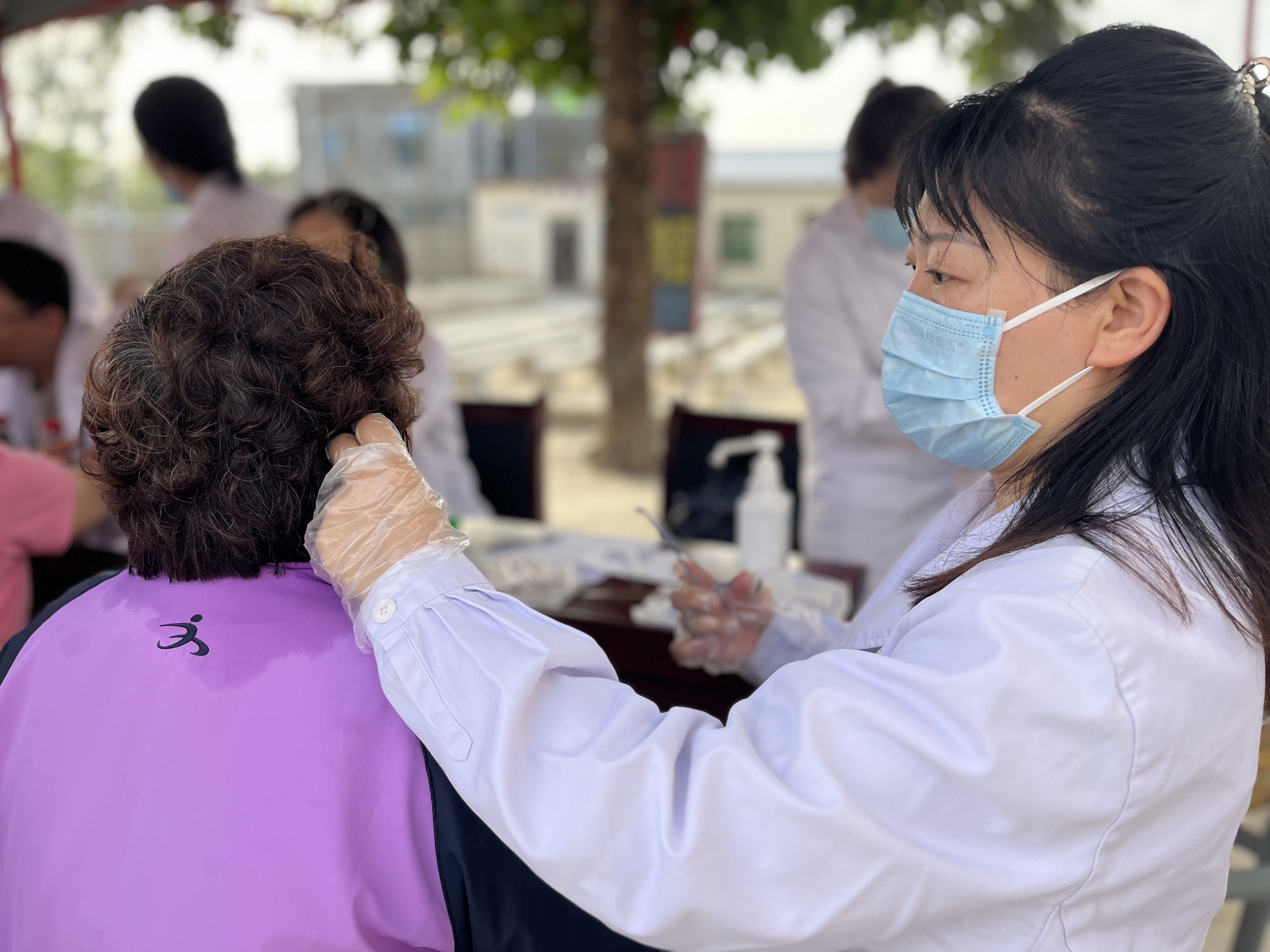 不少年轻女性专程前来咨询生殖健康、备孕生育等相关事项,专家们耐心答疑解惑、给出专业指导;老年村民则以骨关节不适、腰腿疼痛等问题问诊居多,骨科专家细致查体、分析病情,提供诊疗建议。与此同时,护理团队也同步发力,为村民们免费测量血压,开展贴耳穴、头部刮痧等中医理疗。活动还开展了科普讲座,为村民普及生殖医学科的相关知识。