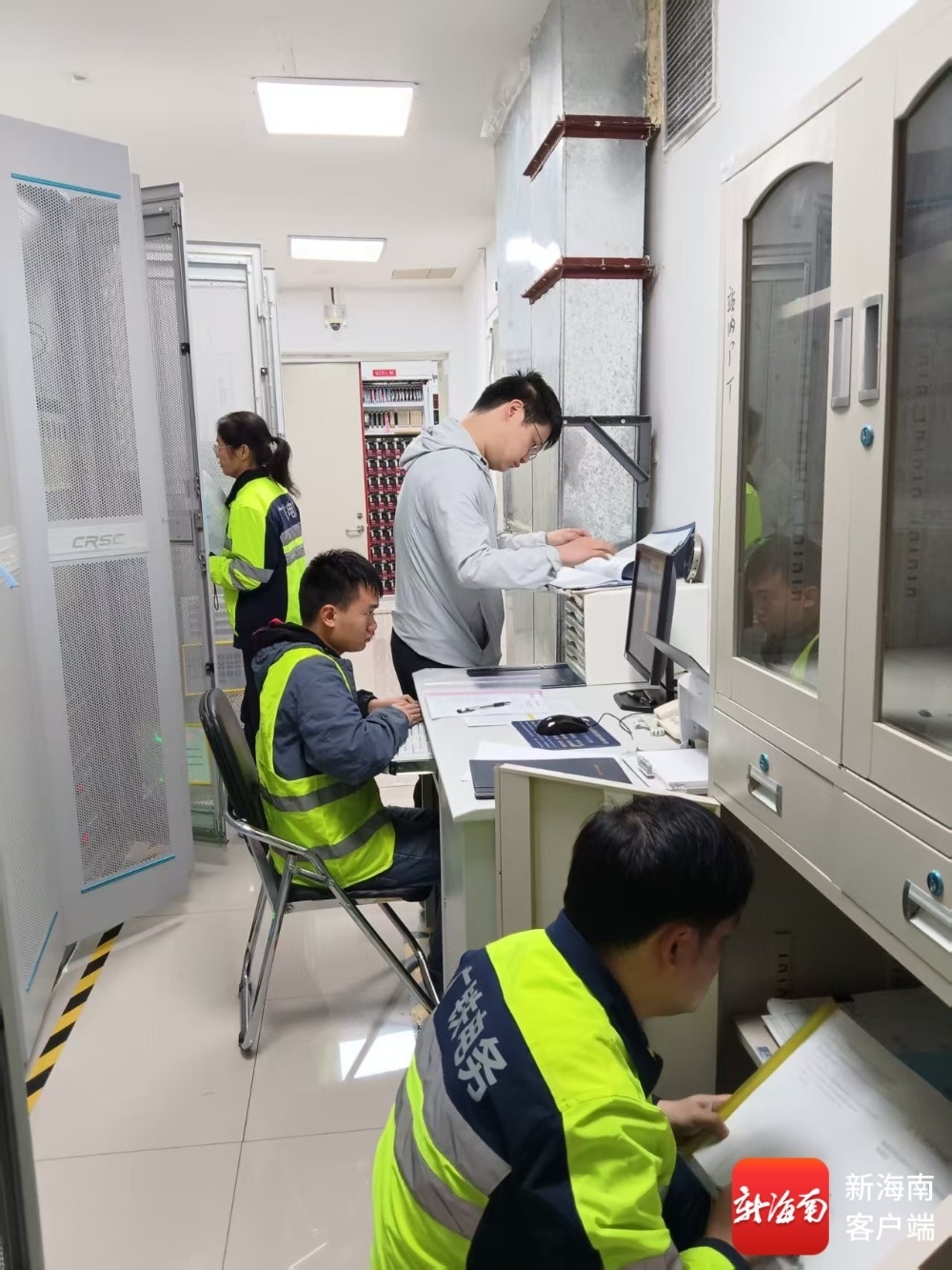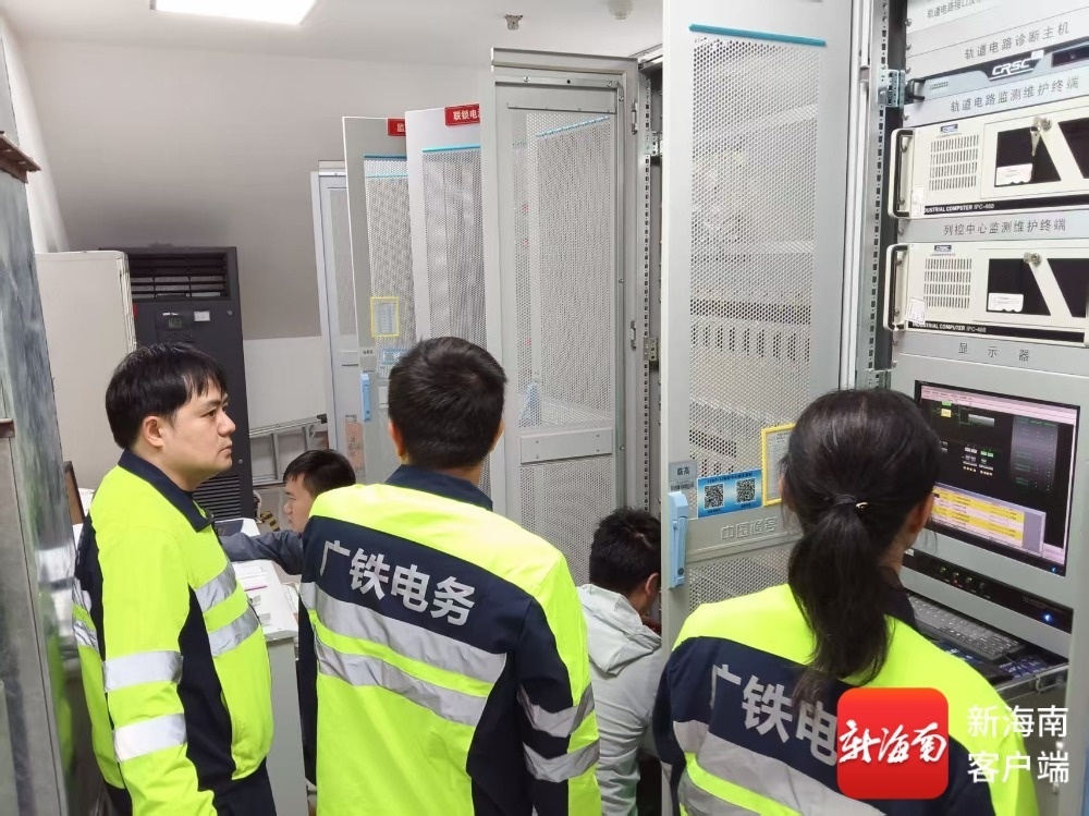海南环岛高铁西段临高南站铁路信号系统设备检查作业现场。通讯员供图