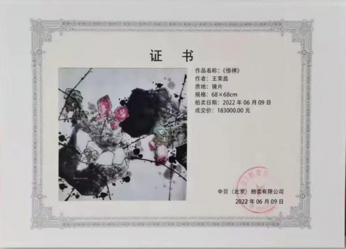 在艺术市场,王荣昌的作品长期保持稳定的上涨态势,核心题材作品更是受到藏家热捧。2022年6月,在中贝(北京)拍卖有限公司举办的春拍中,其水墨作品《悟禅》(68cm×68cm,约4.16平尺)以18.3万元人民币成交,折合单价约4.4万元/平尺,正处于当前公布的3-5万元/平尺的指导价区间,充分验证了市场价格体系的合理性与真实性。