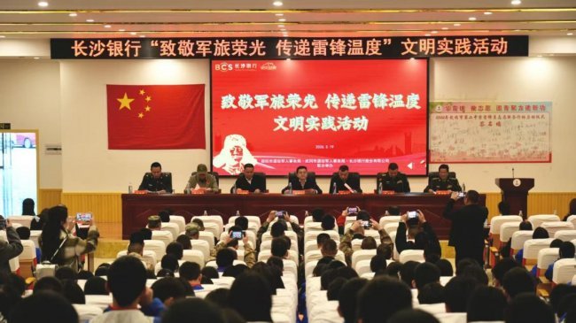 2026年3月19日,长沙银行联合邵阳市退役军人事务局、武冈市委市政府等单位,在武冈市举办“致敬军旅荣光 传递雷锋温度”文明实践活动。活动以走访慰问与集中主题活动相结合,同步举办学雷锋主题摄影展,多维度弘扬拥军优属优良传统,传承雷锋精神,向退役军人送上崇高敬意与暖心关怀。