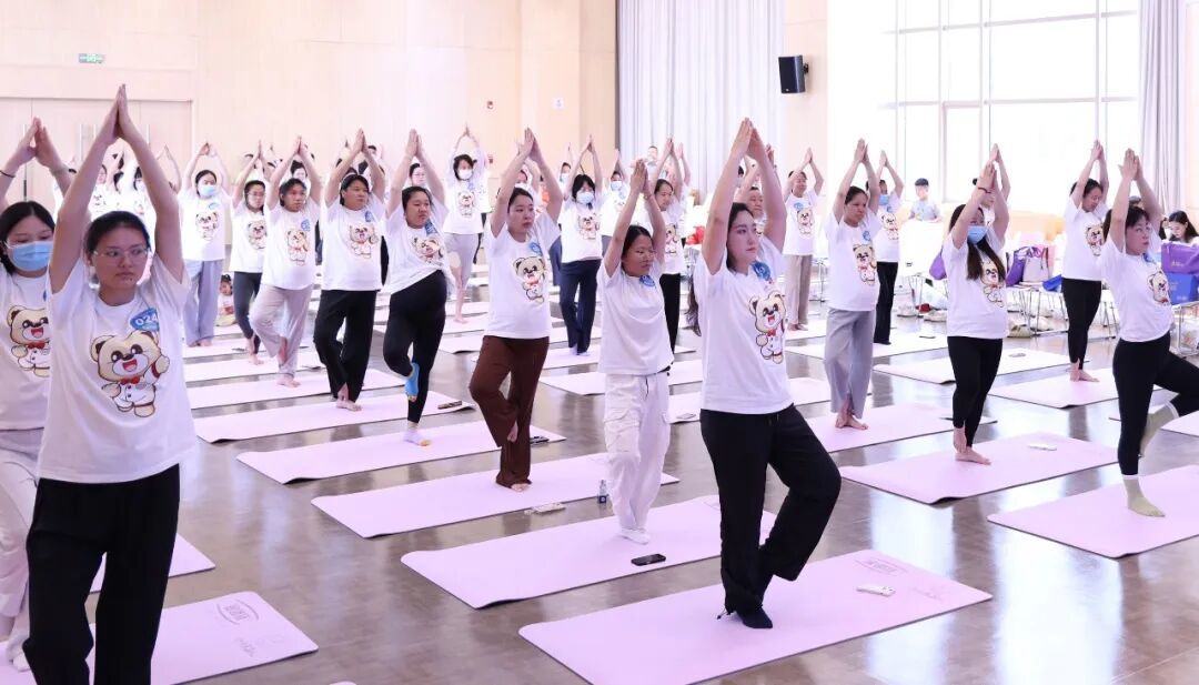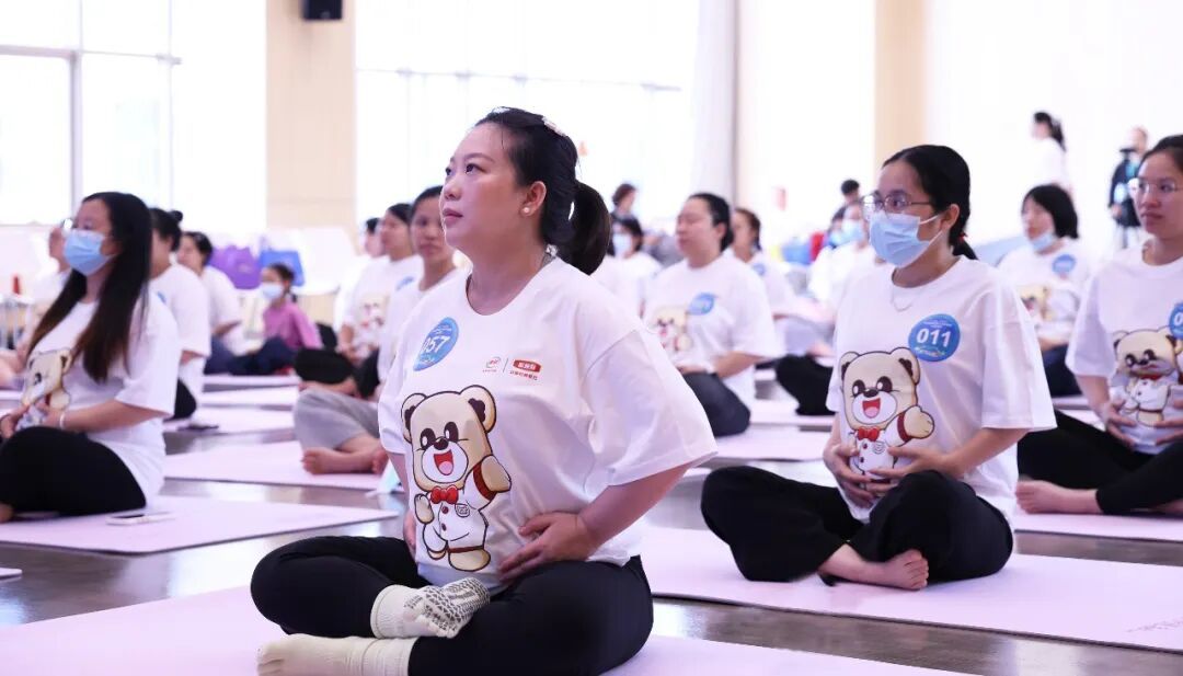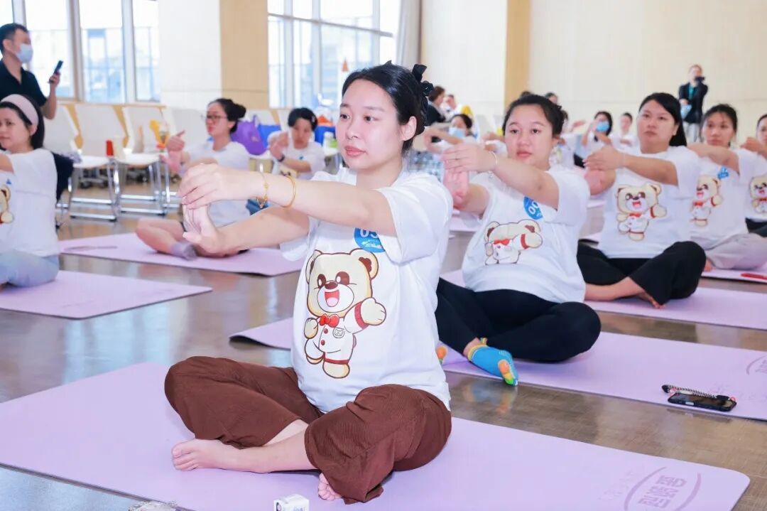 “吸气,双手缓缓向上伸展……呼气,慢慢合十……”在专业瑜伽导师陈香谊的温柔引导下,百名孕妈沉浸在宁静又充满力量的瑜伽世界里。有的孕妈轻轻抚摸着肚子,仿佛在和宝宝“对话”;有的闭眼深呼吸,脸上洋溢着放松的笑容。