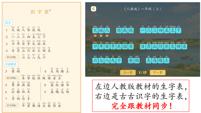 1、人教版 1:1 同步生字表 / 写字表、拼音体系贴合人教版、古诗成语同步教材、幼小衔接无缝对标小学课堂
