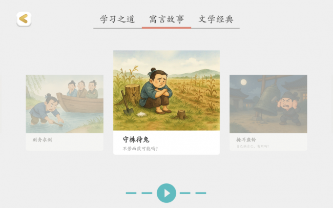 • 阅读载体:以七言古诗、完整成语故事、小学低年级绘本为核心,覆盖人教版课标必背古诗如《静夜思》、小学常用成语,如《守株待兔》等。