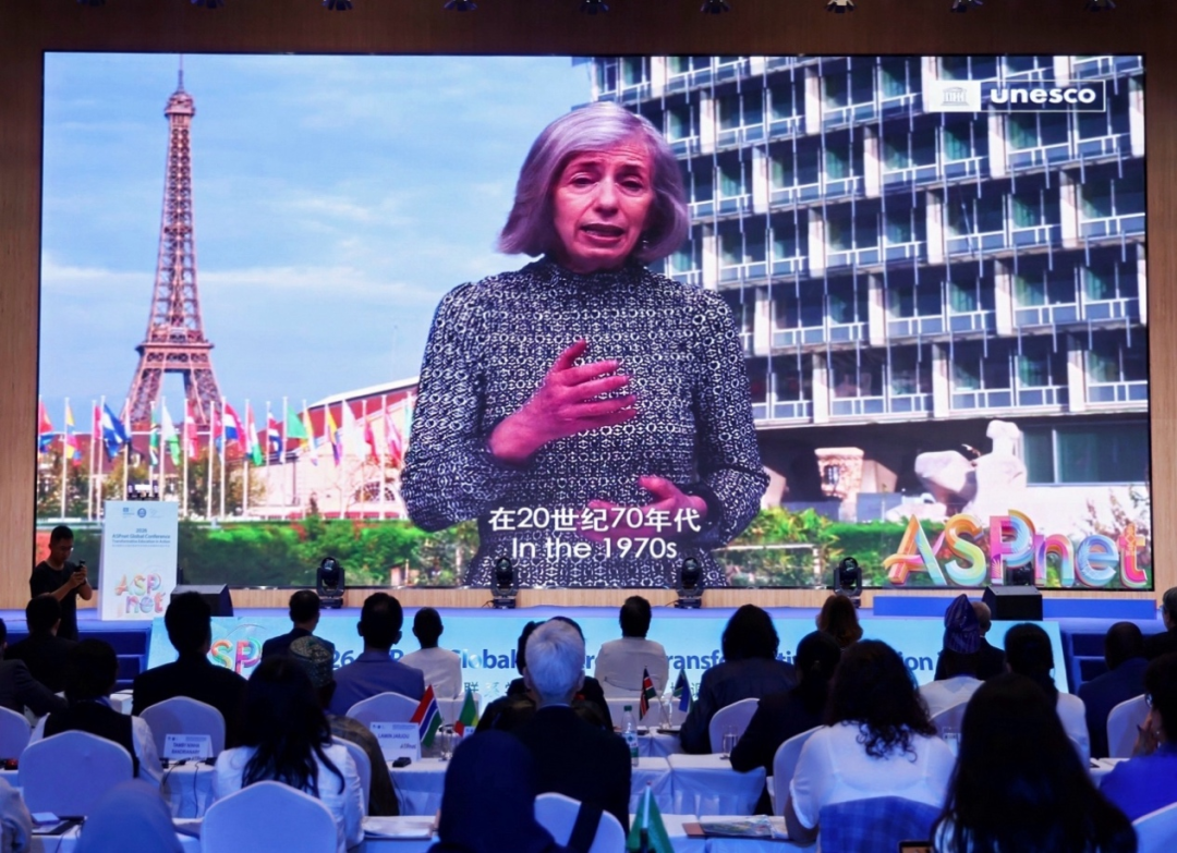 斯蒂芬妮亚・贾尼尼在视频致辞中指出,联系学校网络自1953年成立以来推动多项具有里程碑意义的教育成果落地实施,如今已汇聚170个国家近万所学校,规模持续扩大。她强调,联系学校网络对教科文组织成员国至关重要,充分肯定了各国协调员的核心作用,并祝愿会议研讨取得丰硕成果。