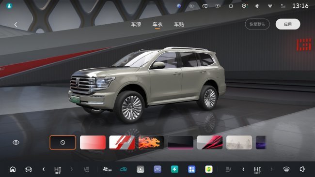 视觉层面同样带来了新鲜感,时光壁纸随晨曦、正午、午后、傍晚、深夜自动变化颜色,亮度色调适配行车安全。3D桌面上的车模可根据用户喜好设计车衣、车贴、外观颜色;3D桌面新增车控快捷键,一键触发HUD、后视镜折叠、氛围灯等常用功能。从娱乐到乘坐,从视觉到操作,全新坦克500让全家人都能在春游路上坐得舒服、待得自在。